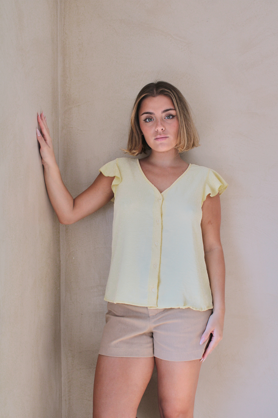 BLUSA CON VOLADO EN HOMBROS Y BOTONES DE CEY FOLK