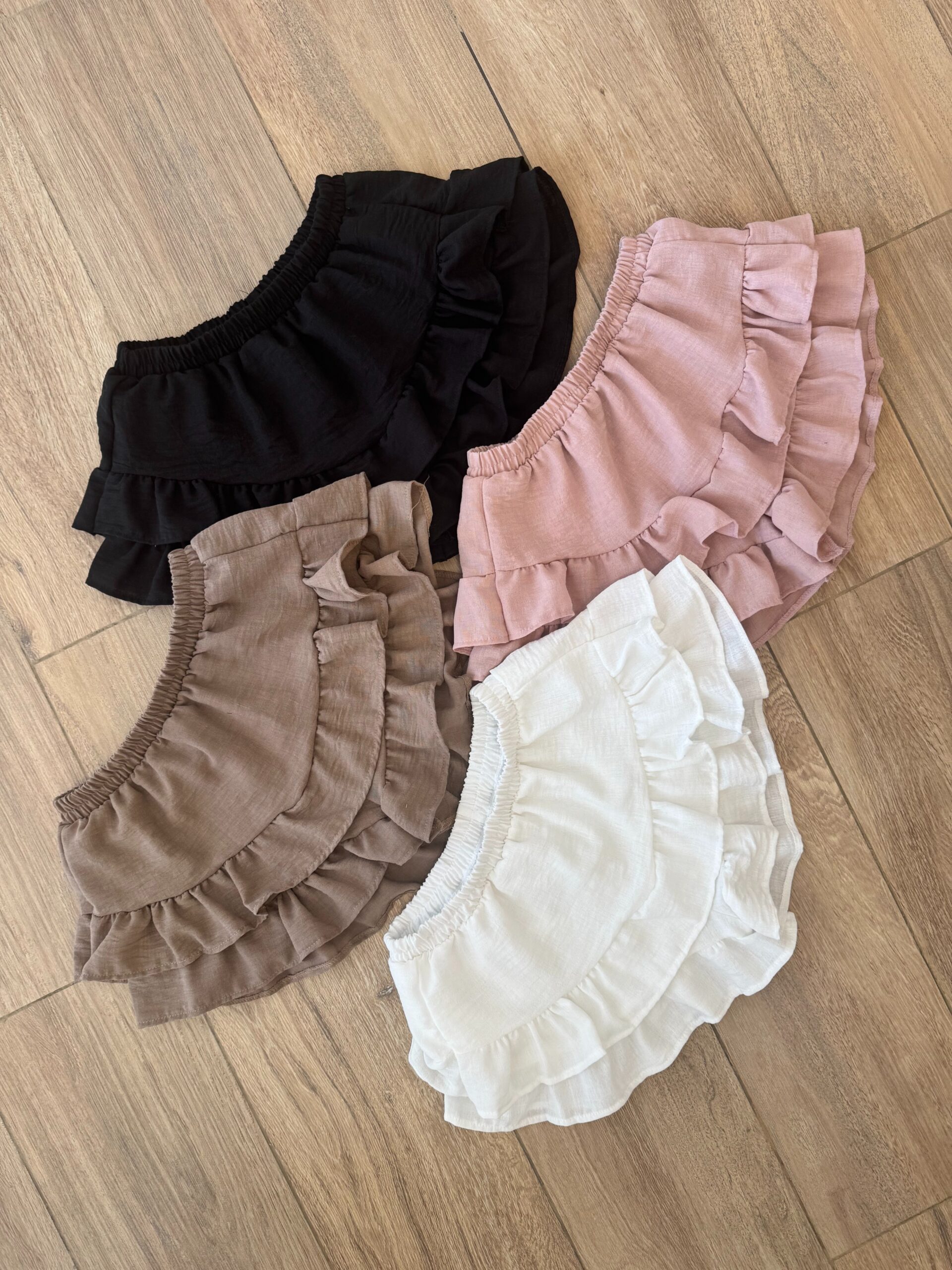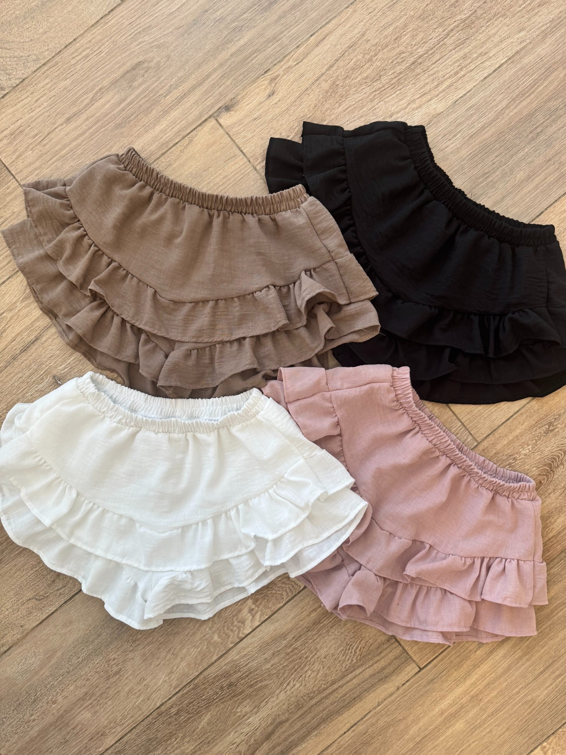 SKORT SHORT POLLERA CON VOLADOS, DE LINO NOMAD