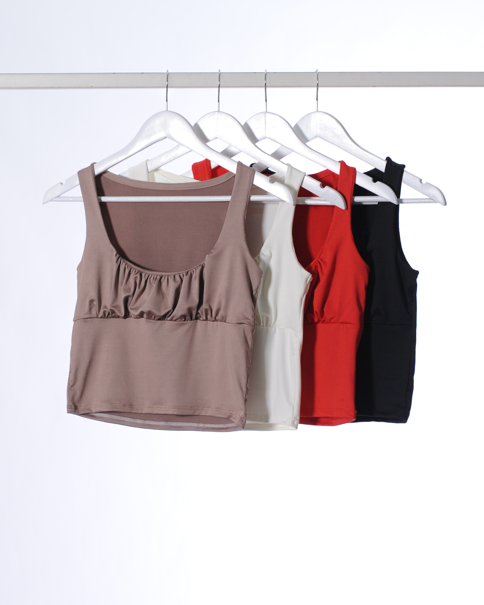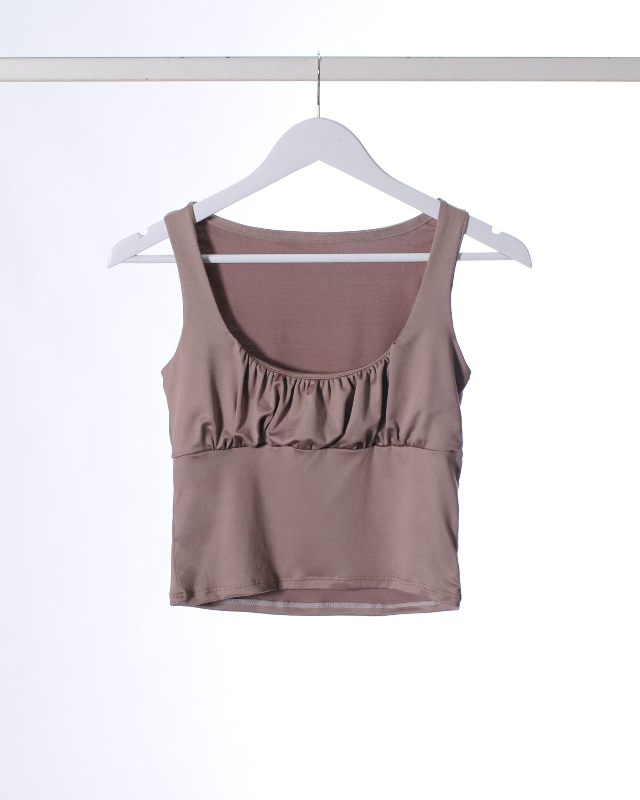 MUSCULOSA BRETEL ANCHO CON FRUNCE EN DELANTERO SUPERIOR, DE TELA MICROFIBRA