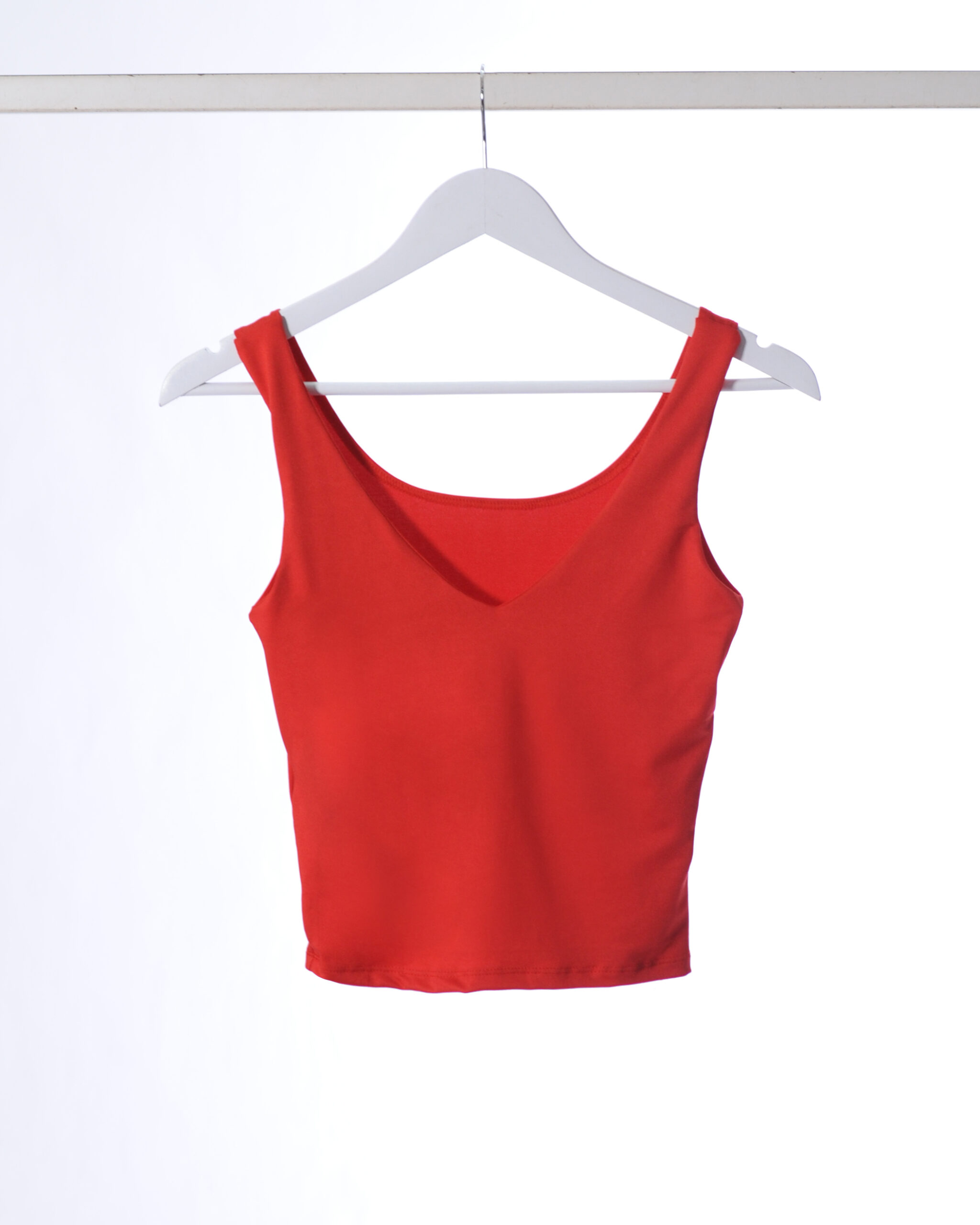 MUSCULOSA ESCOTE V ON VISTA, DE TELA MICROFIBRA
