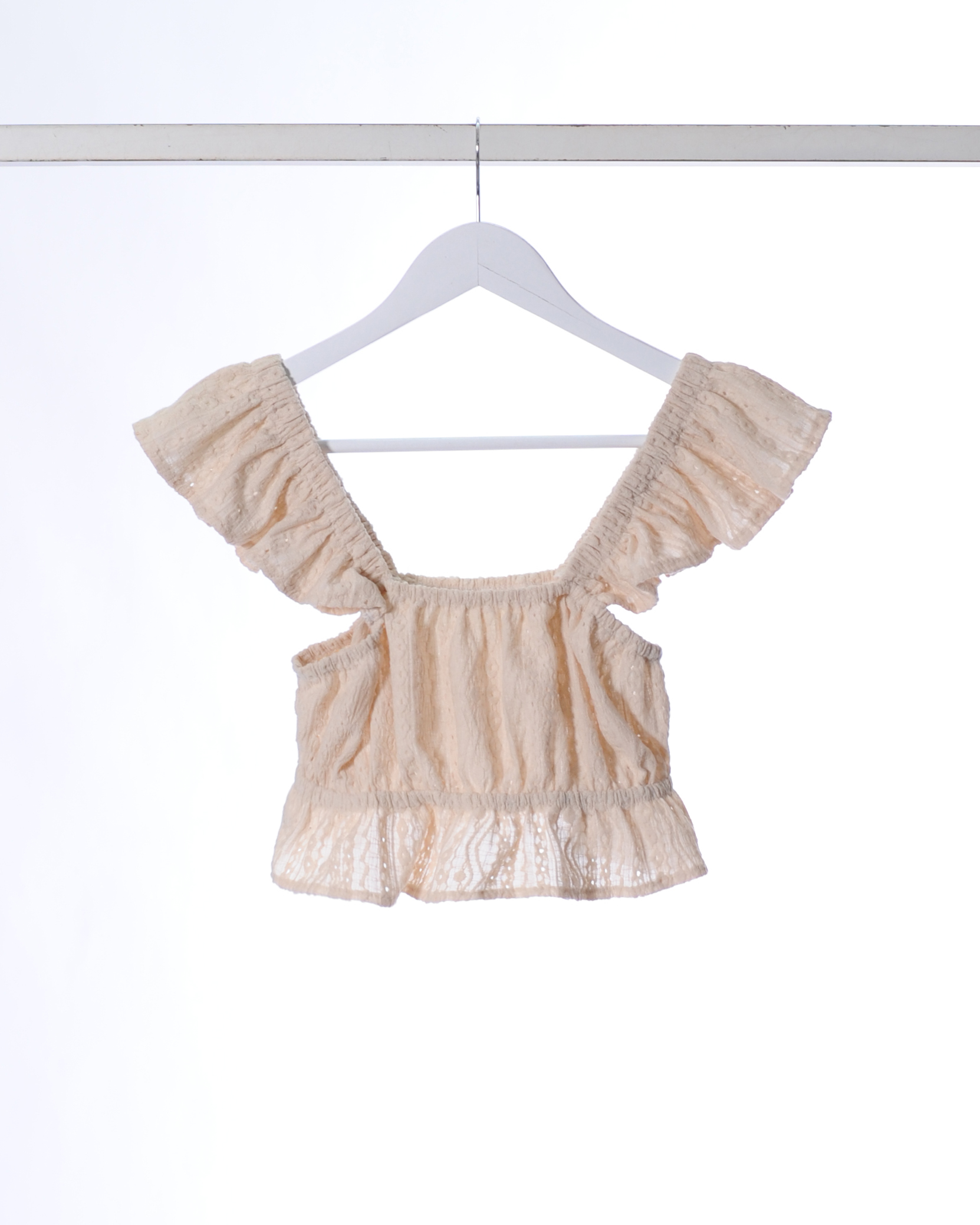 TOP CON VOLADO EN HOMBROS Y ABAJO DE BRODERIE DE PUNTO