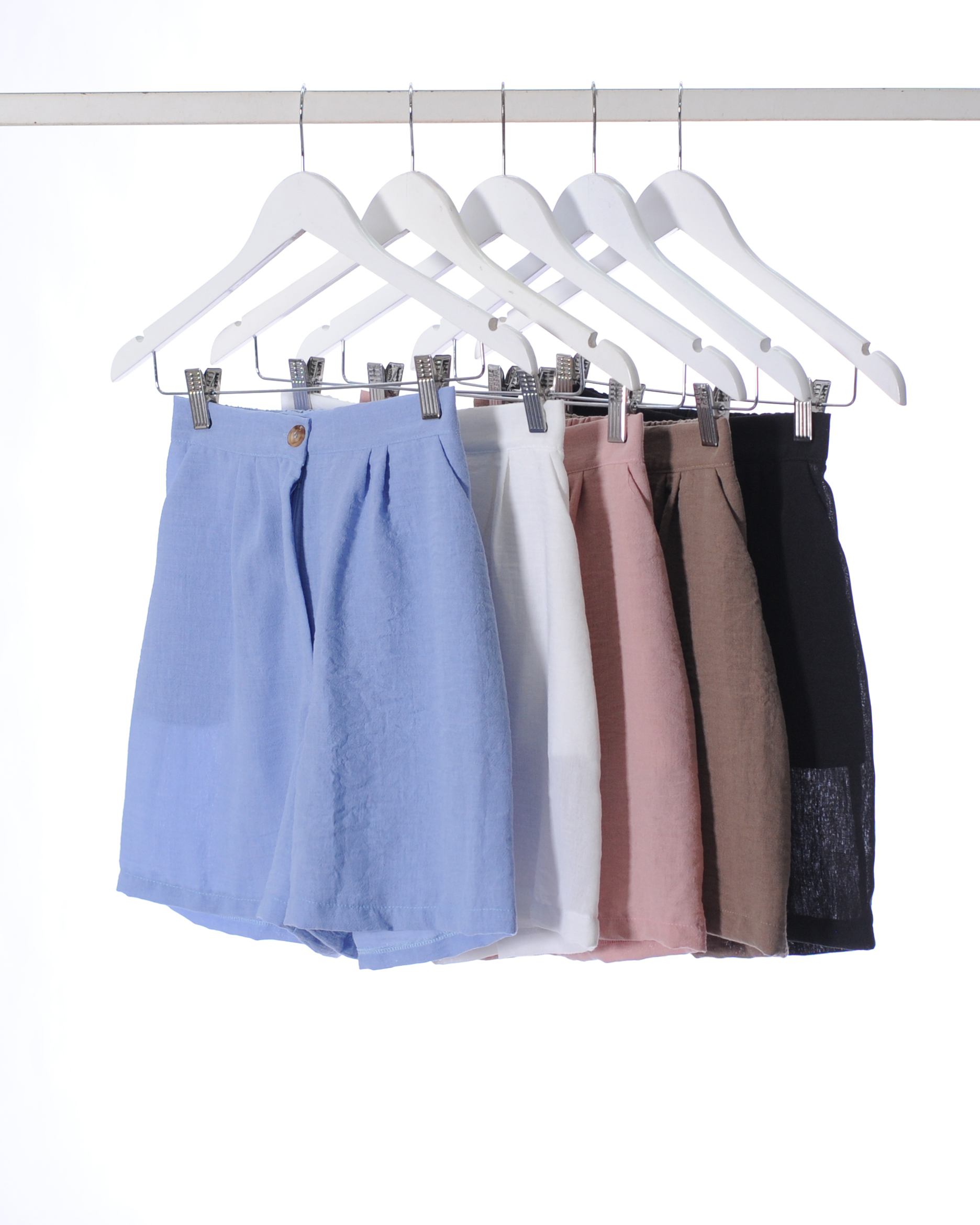 SHORT CON PINZAS, BOLSILLOS, CIERRE Y BOTON, Y ELASTICO EN ESPALDA DE LINO NOMAD