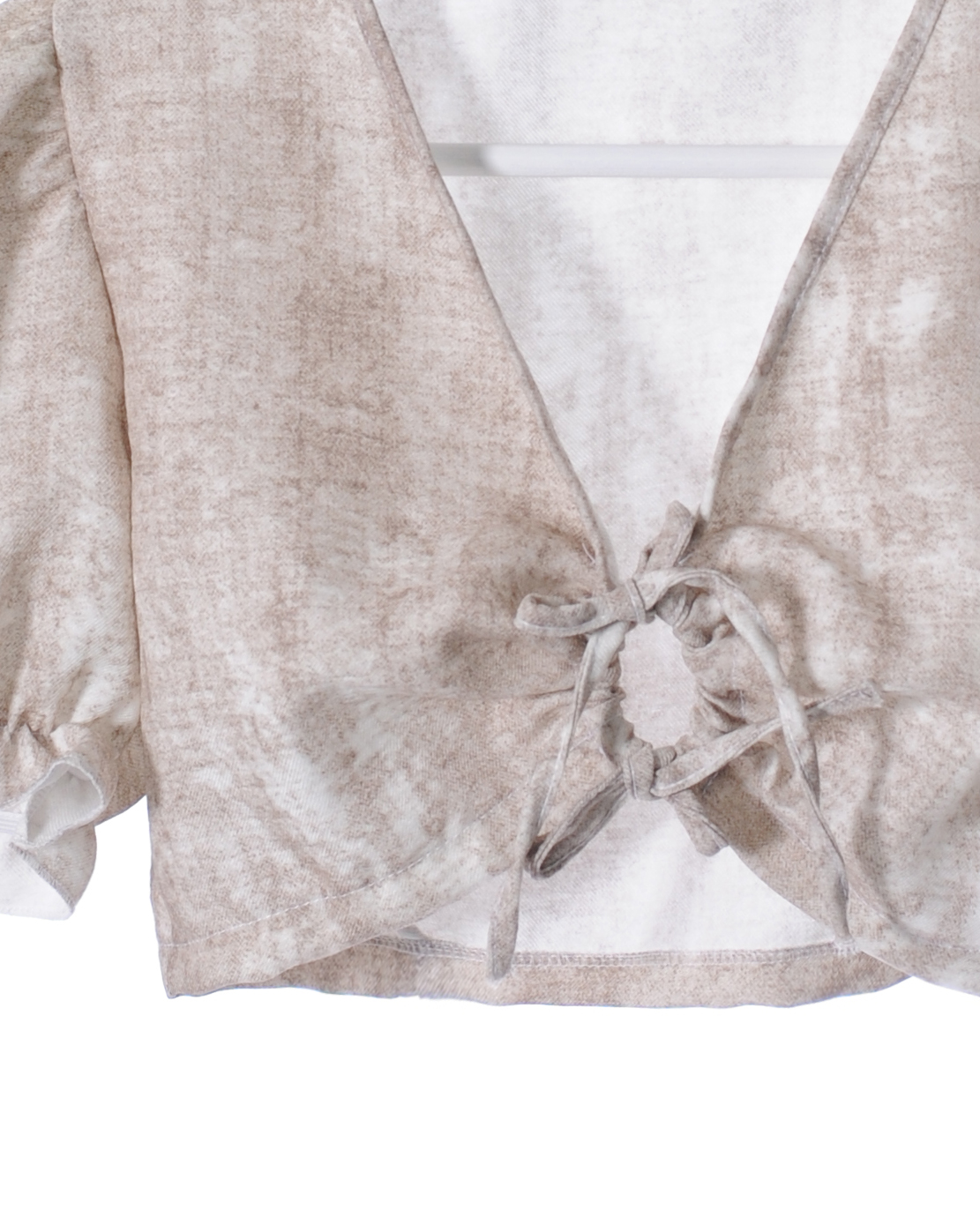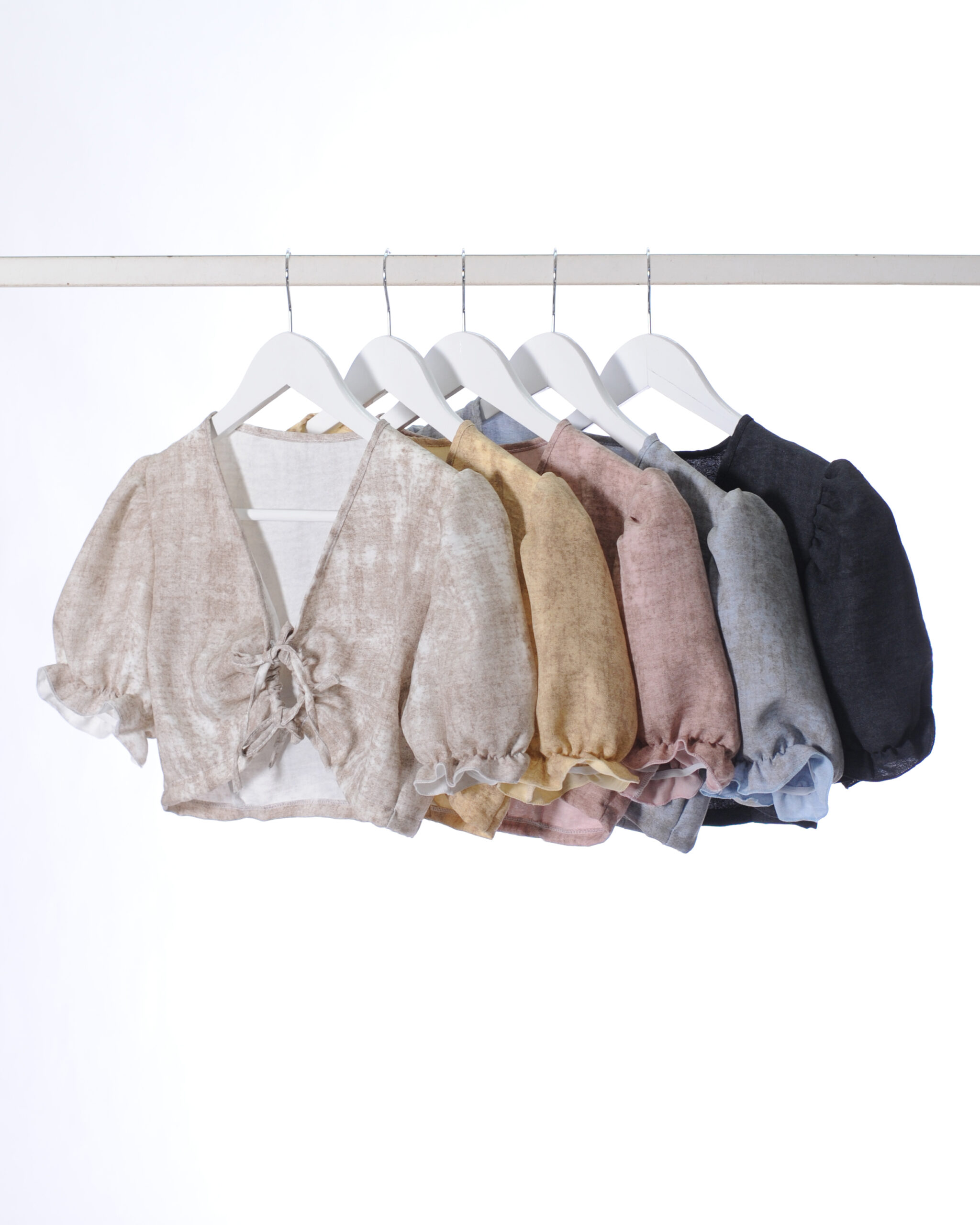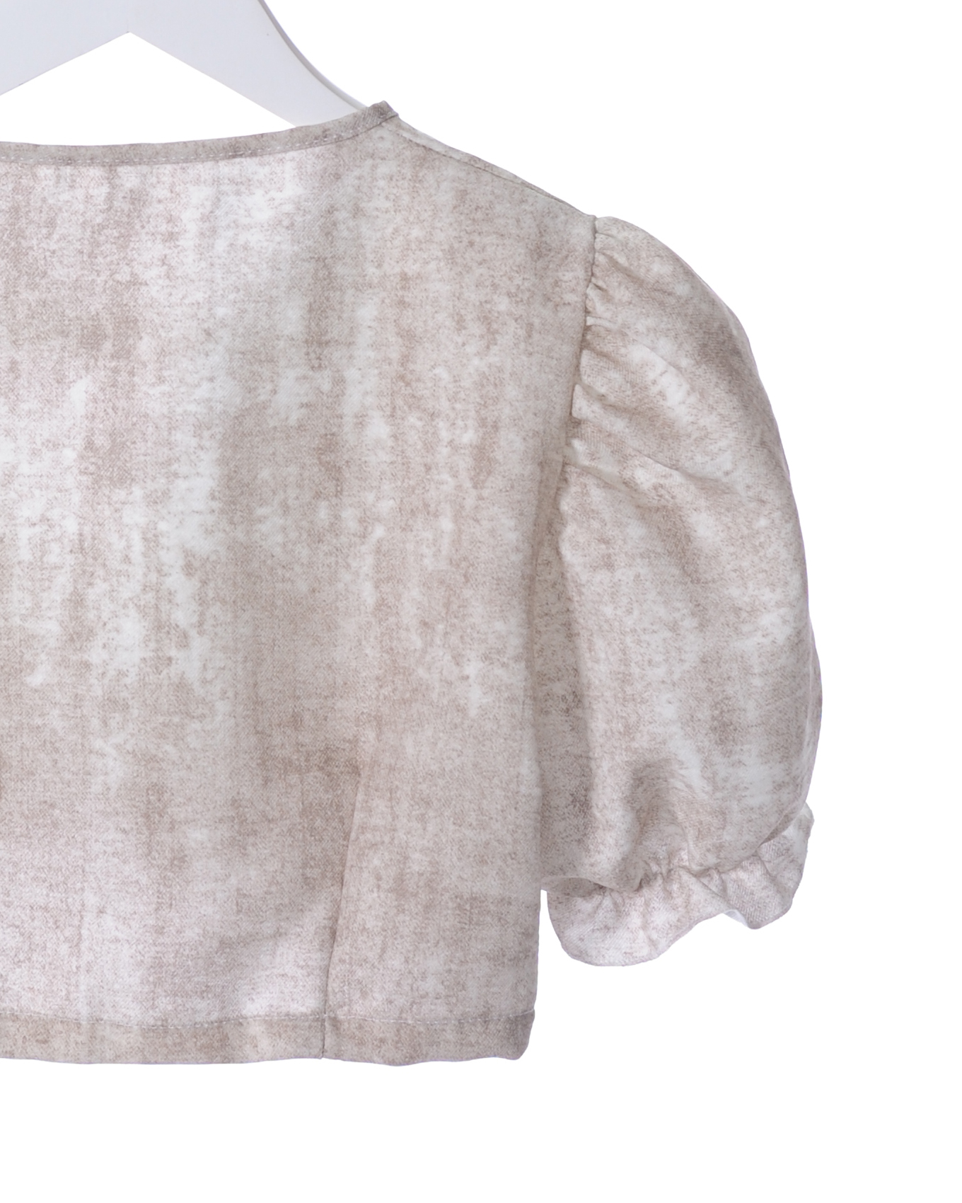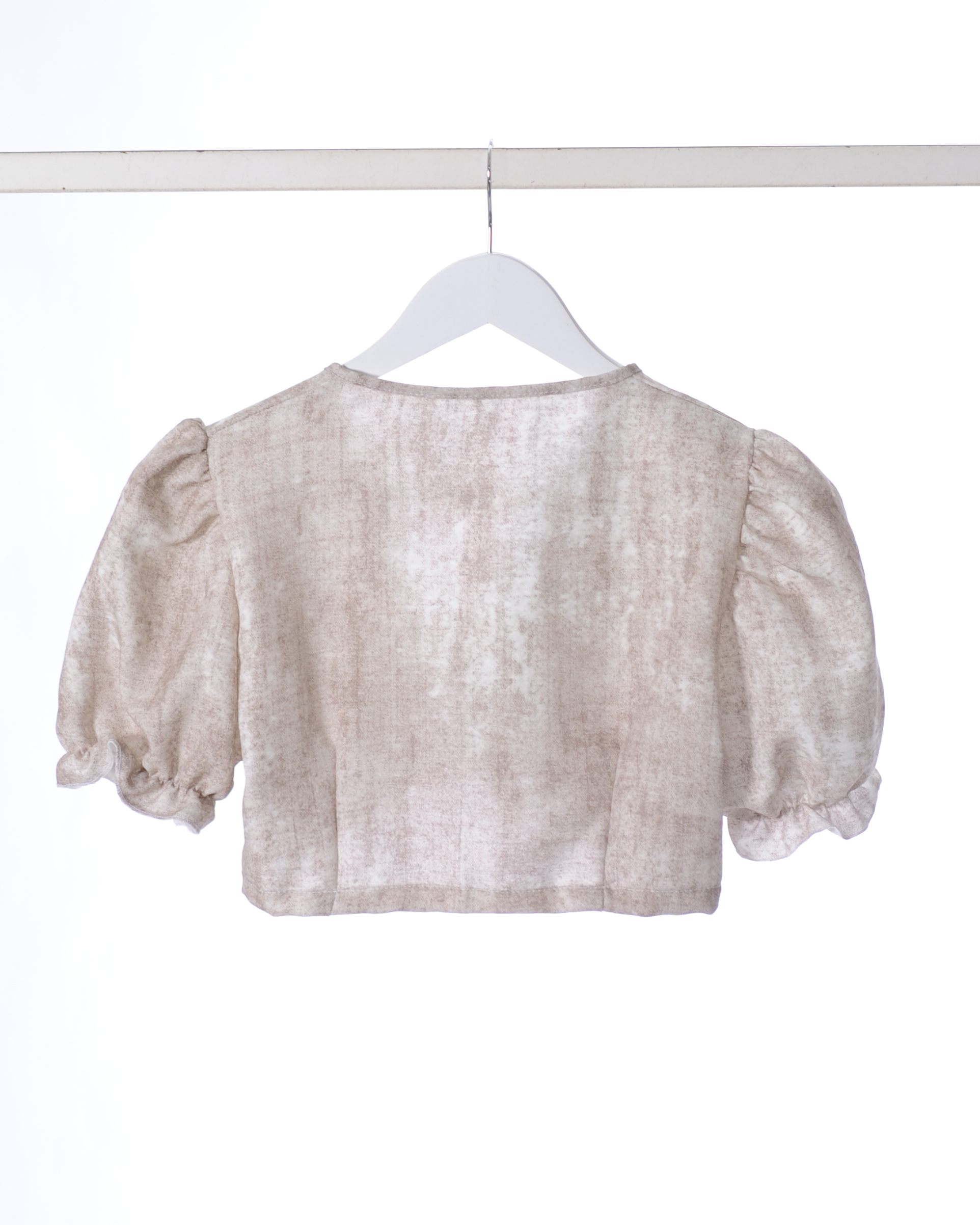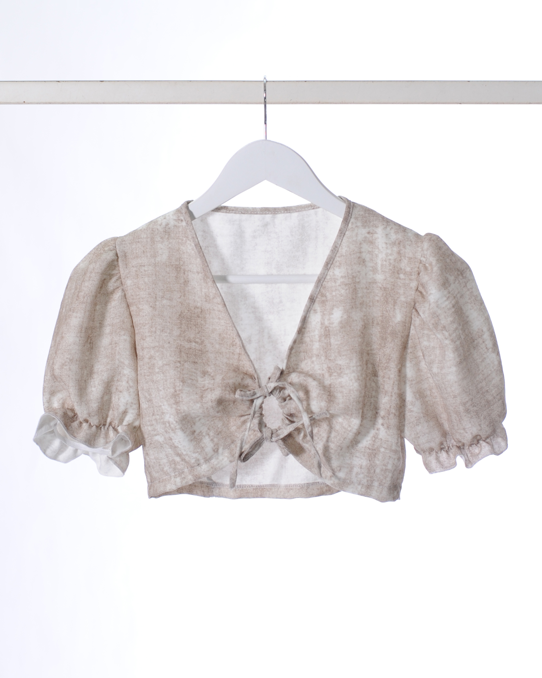 BLUSA TOP CON MANGA PRINCESA Y DELANTERO PARA ATAR, DE CEY POLINA VINTAGE, EFECTO PINTADO.